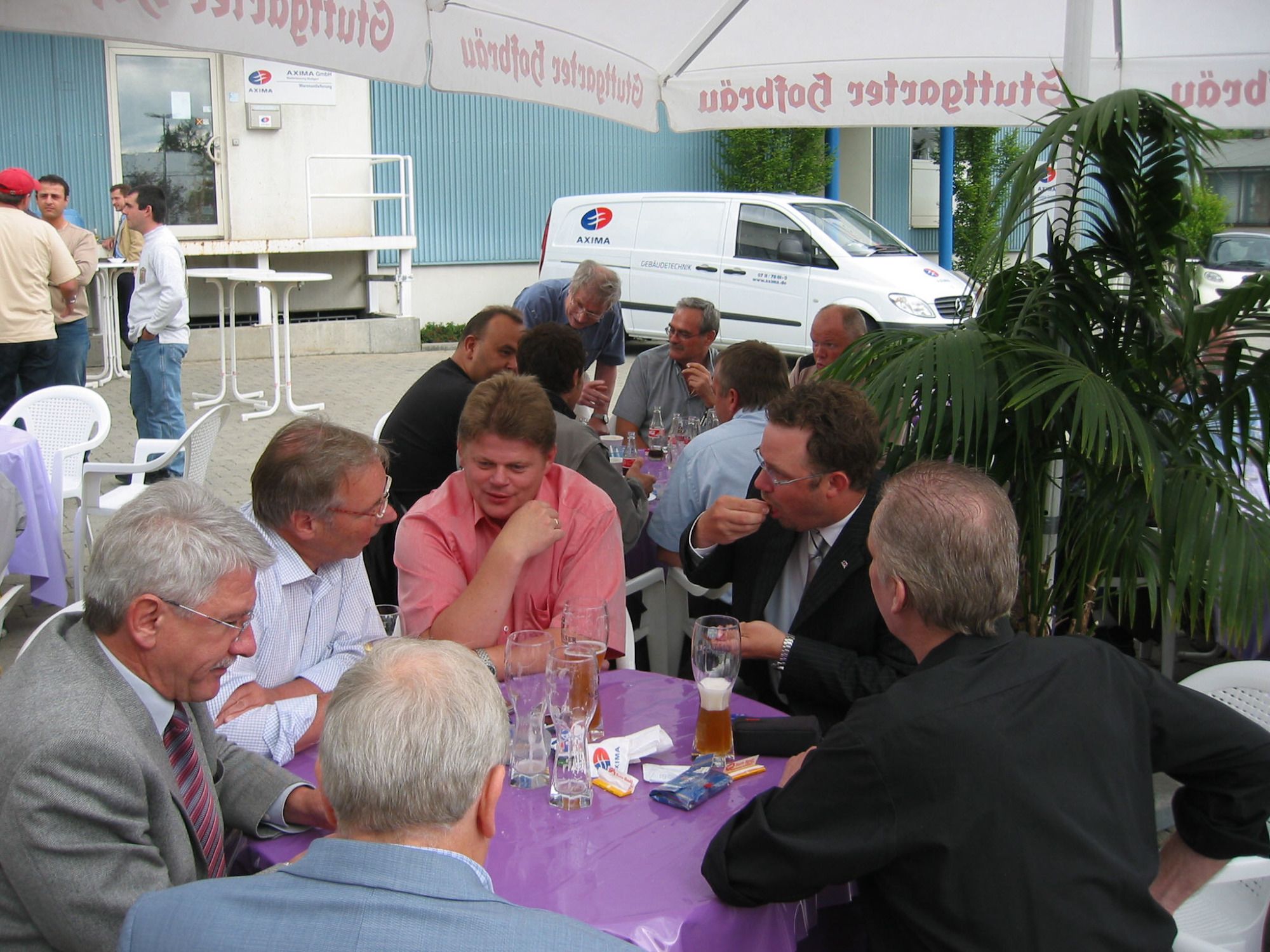 Eine Zeitlang fand alljährlich das berühmt berüchtigte Hoffest statt. Bei gutem Essen und leckeren Getränken konnten die Mitarbeiterkontakte gefestigt und vertieft werden. 😍 Durch nette Service-Mitarbeiterinnen wurde das Fest für manche Kollegen zu einer richtigen Wohlfühloase. 🥰